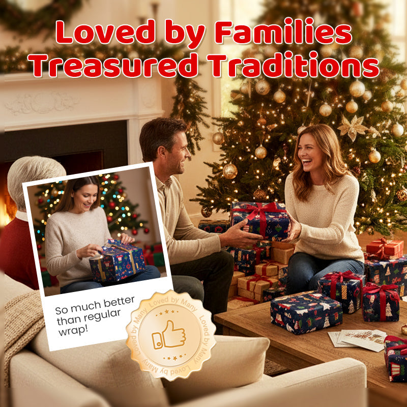 IMPRESSION VIVANTE ET RÉSISTANTE À LA DÉCOLORATION - Le fond bleu profond et riche et les graphismes colorés sont imprimés avec une encre de haute qualité, garantissant que le motif reste éclatant et ne se décolore pas, pour que vos cadeaux restent beaux sous le sapin.