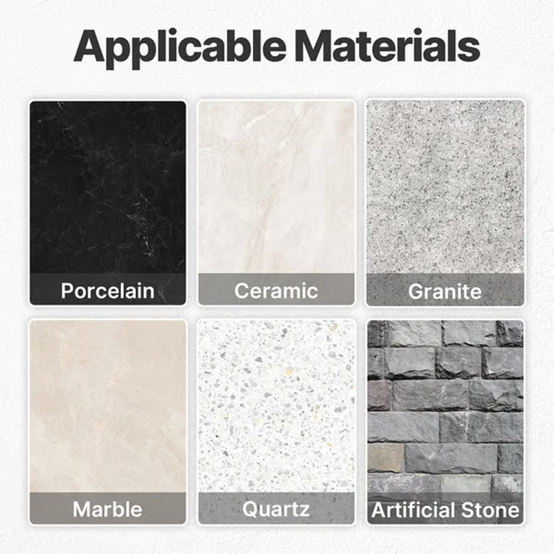 UTILISATION POLYVALENTE À SEC / HUMIDE : Conçue pour une adaptabilité maximale, cette lame prend en charge les modes de coupe à sec et humide. Elle traite sans effort une large gamme de matériaux durs, y compris la céramique, le marbre et le granit, ce qui la rend parfaite pour diverses applications de rénovation et de sculpture.