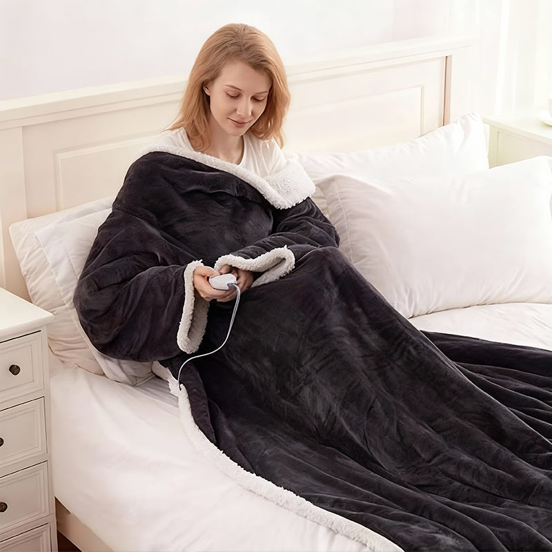 Contenu du colis : 1 x Sweat‑plaid chauffant en flanelle à manches