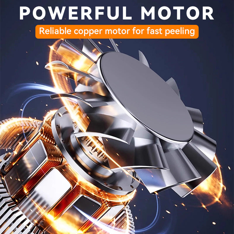 MOTEUR PUISSANT À FIL DE CUIVRE – Équipé d'un moteur à fil de cuivre haute performance, cet éplucheur électrique garantit un épluchage efficace et rapide de divers fruits et légumes. Le moteur fournit une puissance constante, permettant d'éplucher sans effort même les petits fruits, sans caler ni perdre en performance. Sa durabilité et sa fiabilité en font un accessoire qui vous fera gagner du temps dans toutes les cuisines.