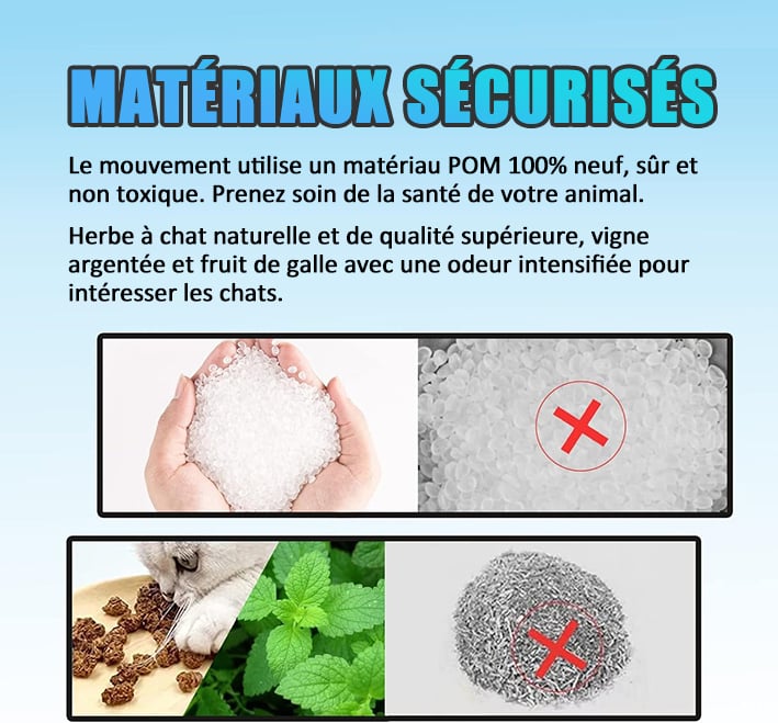 Avec son design captivant et son parfum irrésistible d'herbe à chat, c'est un jouet novateur et interactif qui gardera votre boule de poils divertie et heureuse, tout en renforçant votre lien dans le processus.