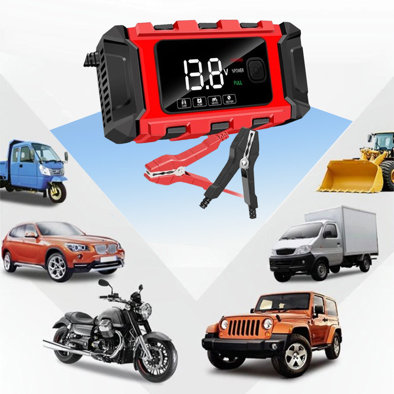 TECHNOLOGIE INTELLIGENTE DE POINTE : Équipé d'une puce intelligente, il fournit le courant de charge optimal pour vos voitures et motos. L'écran numérique affiche en temps réel l'état de la charge, vous tenant informé à tout moment.