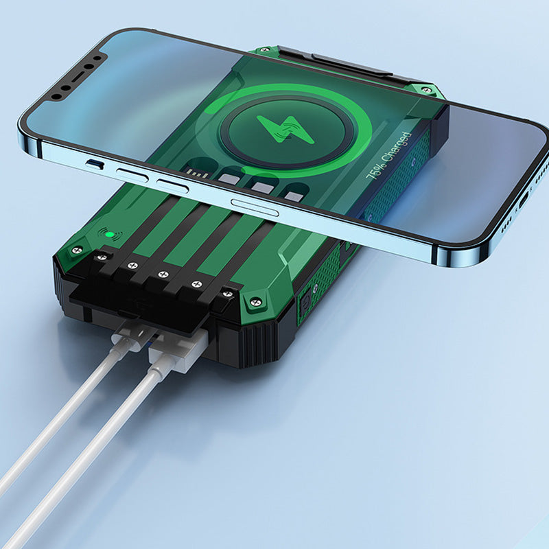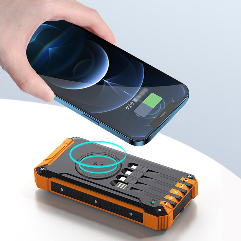 Restez connecté, rechargez et profitez du grand air avec notre banque d'alimentation portable sans fil solaire. Restez alimenté où que vous alliez grâce à notre banque d'alimentation portable sans fil solaire. C'est un compagnon fiable pour tous vos besoins de charge, que vous exploriez la nature ou que vous naviguiez dans les rues de la ville.