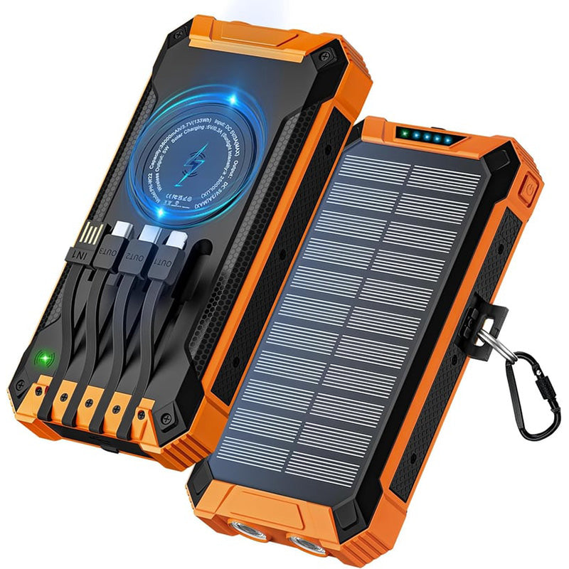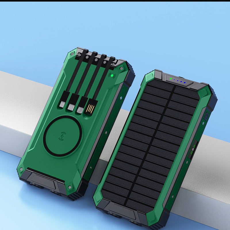 Functions: Solar + Self-contained 4 cables + Wireless charging